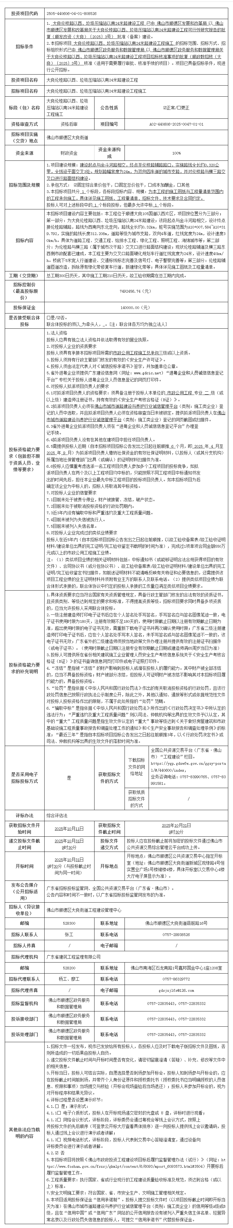 顺德大良伦桂路以西、垃圾压缩站以南24米路建设工程施工招标公告