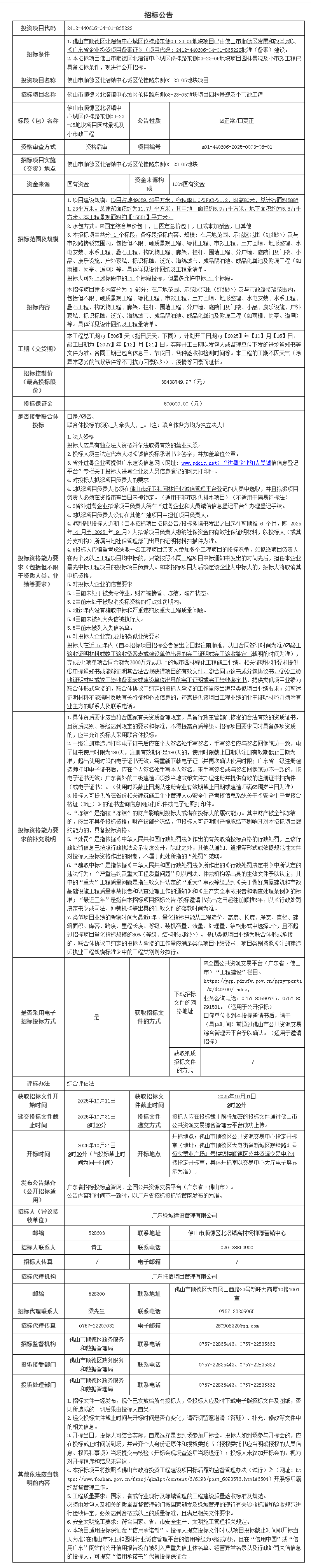 佛山市顺德区北滘镇中心城区伦桂路东侧03-23-05地块项目园林景观及小市政工程招标公告