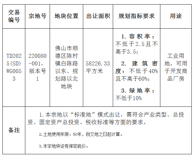 佛山市顺德区陈村镇白陈路以东、规划路以北地块网上挂牌出让