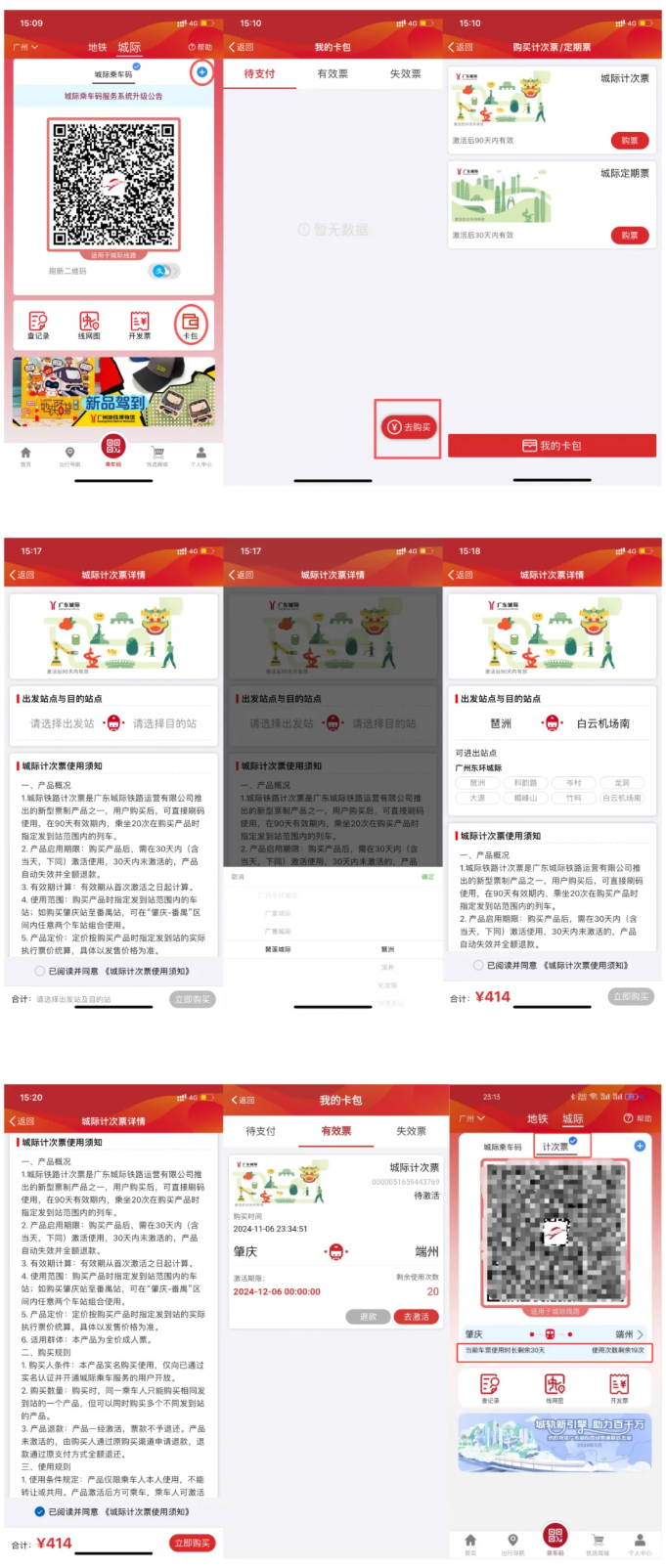 如何购买?打开广州地铁官方APP-乘车码-城际乘车码,点击右上角“+”即可按提示购买,也可点选右下角“卡包”-“去购买”进行购买。两种优惠票仅向已在广州地铁官方APP通过实名认证并开通城际乘车服务的用户开放,优惠票仅限本人使用。