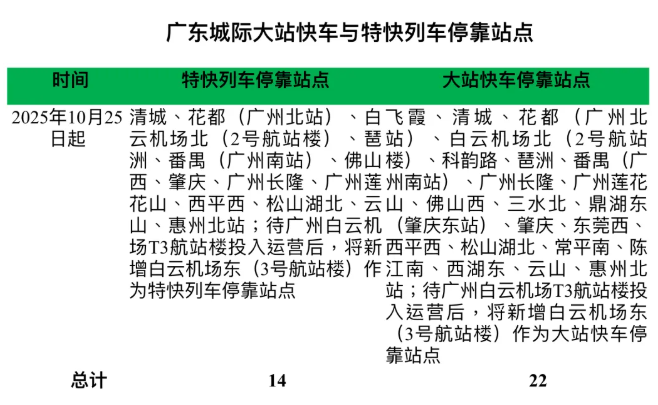 10月25日起,广惠、广肇、广清、广州东环和琶莲城际铁路将启用新版运行图。