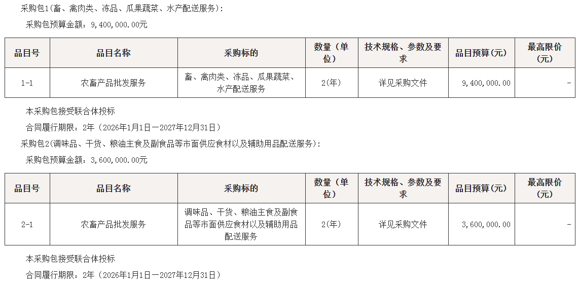 采购包2(调味品、干货、粮油主食及副食品等市面供应食材以及辅助用品配送服务)特定资格要求如下: