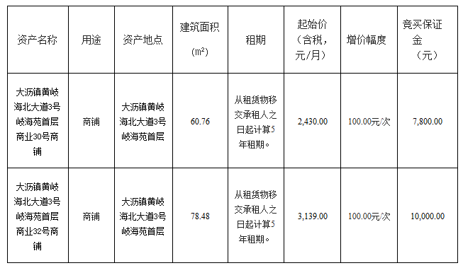 南海大沥镇黄岐海北大道3号岐海苑首层商业30号商铺等两项物业出租项目