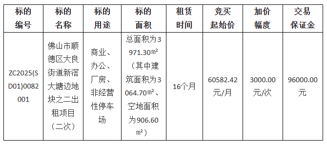 佛山市顺德区大良德良物业管理公司采用网上竞价方式出租位于佛山市顺德区大良街道新滘大塘边地块之二,欢迎符合资格的竞买人参与竞价。