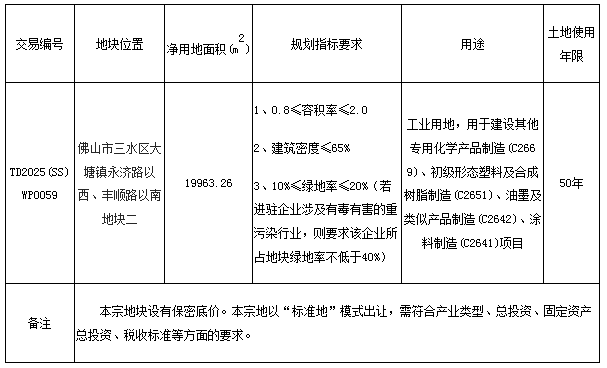 五、有意参与竞买者可于2025年10月31日后登录网上交易系统下载TD2025(SS)WP0059地块的《佛山市三水区国有建设用地使用权网上拍卖出让文件》。