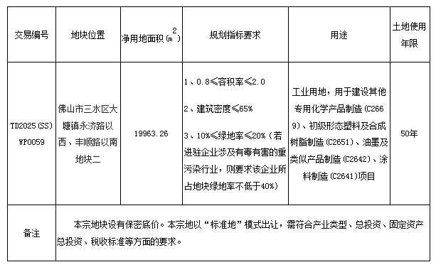 五、有意参与竞买者可于2025年10月31日后登录网上交易系统下载TD2025(SS)WP0059地块的《佛山市三水区国有建设用地使用权网上拍卖出让文件》。