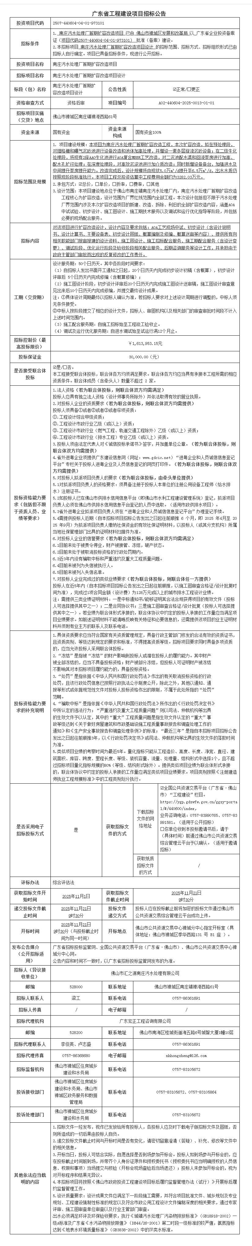 禅城南庄污水处理厂首期扩容改造项目设计招标公告