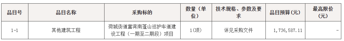 荷城街道富湾南蓬山巡护车道建设工程(一期至二期段)项目采购项目的潜在供应商应在广东省政府采购网https://gdgpo.czt.gd.gov.cn/获取采购文件,并于 2025年11月11日 09时30分 (北京时间)前提交响应文件。