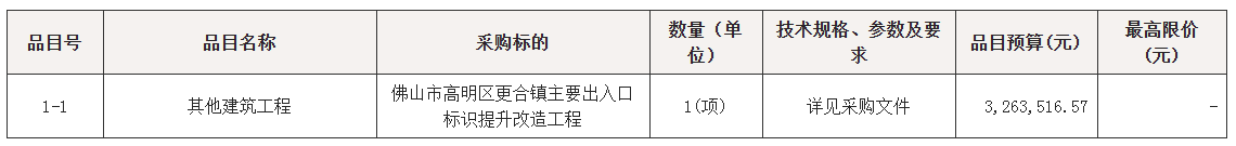 佛山市高明区更合镇主要出入口标识提升改造工程采购项目的潜在供应商应在广东省政府采购网https://gdgpo.czt.gd.gov.cn/获取采购文件,并于 2025年11月12日 09时30分 (北京时间)前提交响应文件。