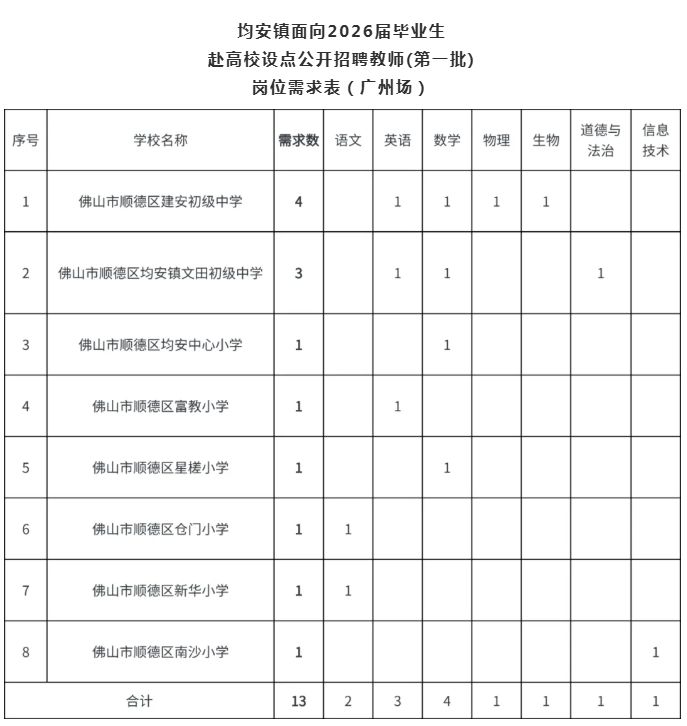 1.南海区教育系统2026-2027学年面向毕业生招聘教师计划及岗位表(第一场)