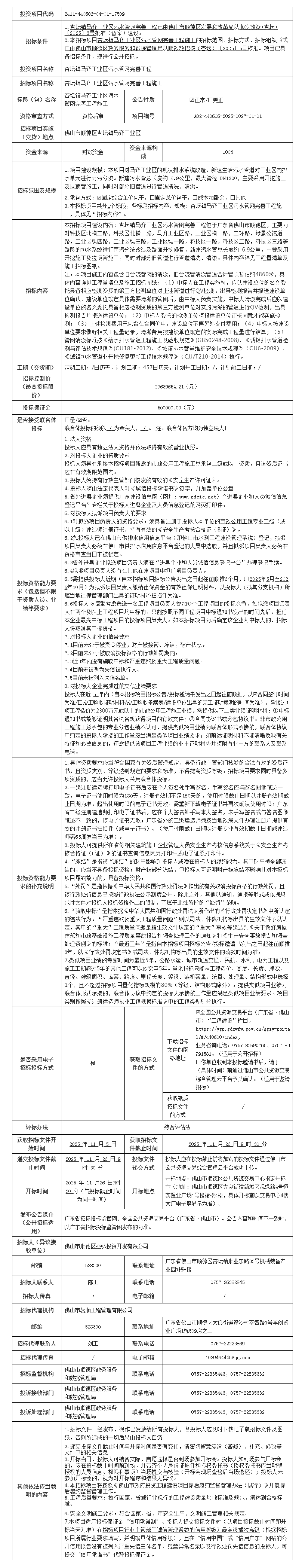 时间:2025-11-06 人气:1595 来源:佛山市公共资源交易信息化综合平台 作者: