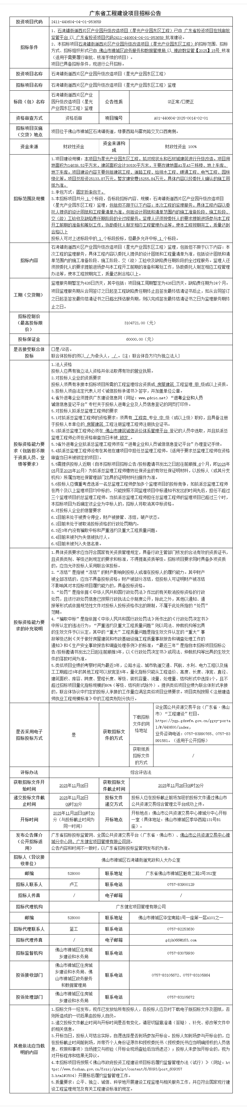 时间:2025-11-09 人气:563 来源:佛山市公共资源交易信息化综合平台 作者: