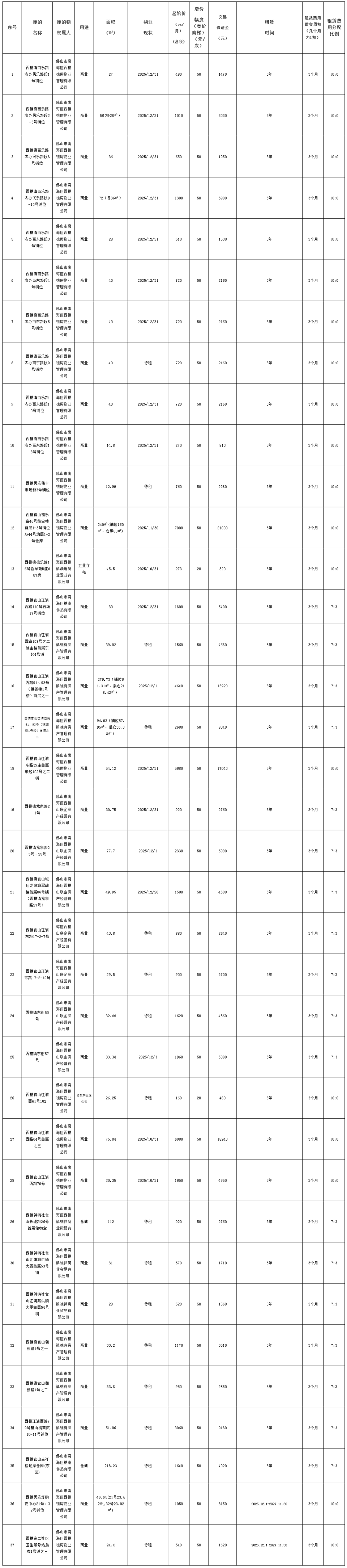 5.上述物业均按现状招租。表内面积数据仅供参考,以实际交付面积为准,不影响租赁费用标准。