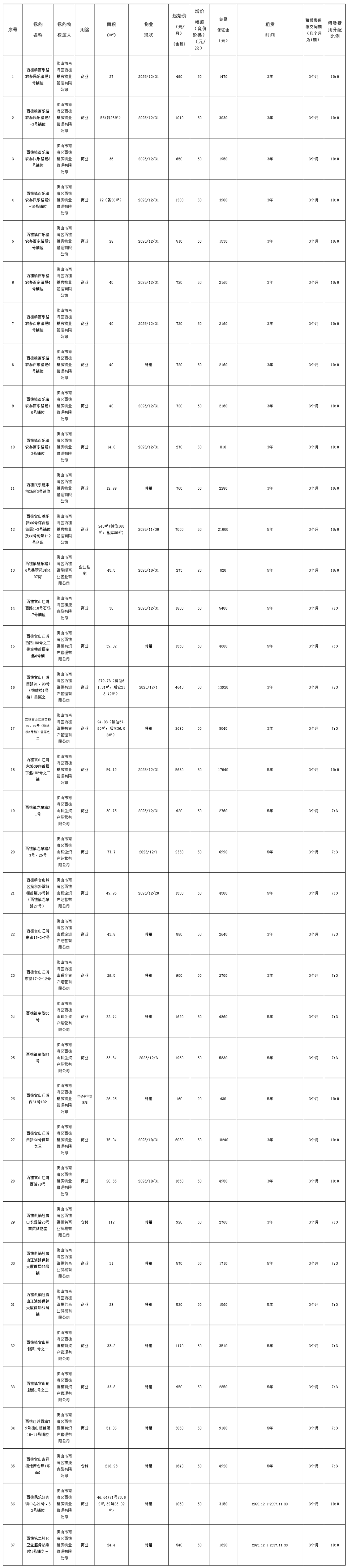 5.上述物业均按现状招租。表内面积数据仅供参考,以实际交付面积为准,不影响租赁费用标准。