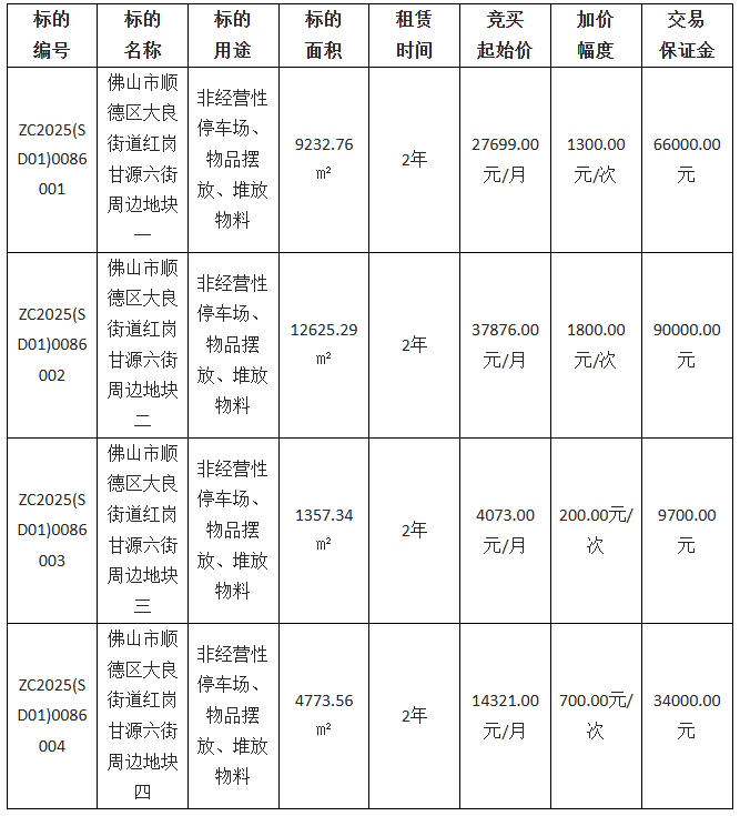 1.项目名称:佛山市顺德区大良街道红岗甘源六街周边地块一等4宗地块出租项目