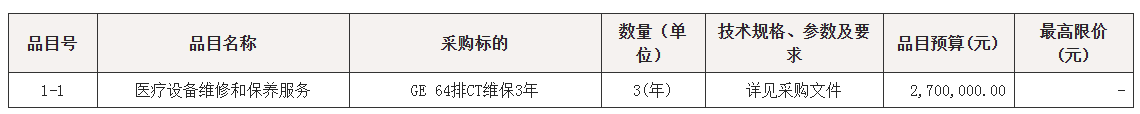 GE 64排CT维保3年招标项目的潜在投标人应在广东省政府采购网https://gdgpo.czt.gd.gov.cn/获取招标文件,并于 2025年12月01日 09时30分 (北京时间)前递交投标文件。