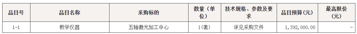 精密测量与制造技术实训中心建设项目--五轴激光加工中心采购招标公告