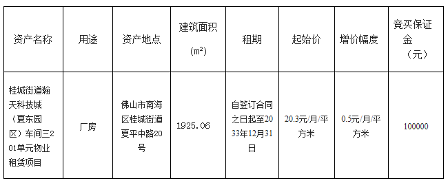 1.招租人:佛山市南海区大沥资产经营管理有限公司