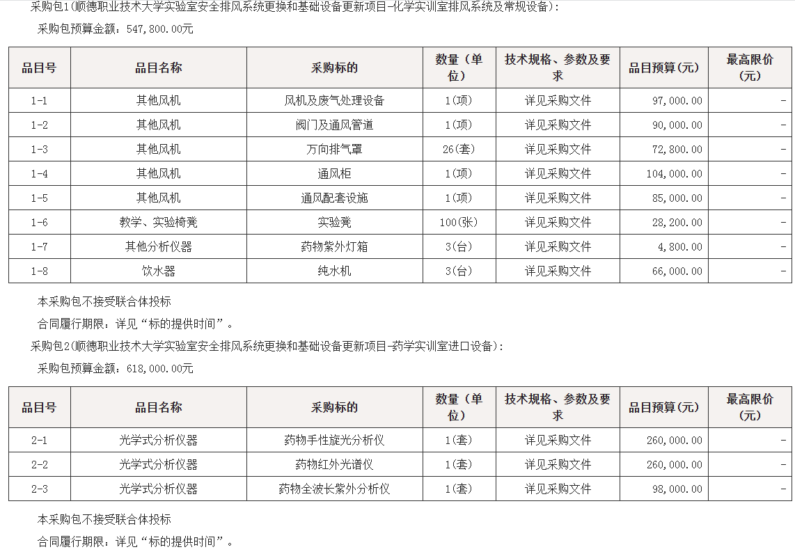 顺德职业技术大学实验室安全排风系统更换和基础设备更新项目招标公告