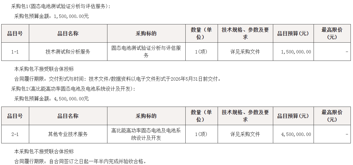 项目名称:固态电池研发中心2025年委外技术服务项目