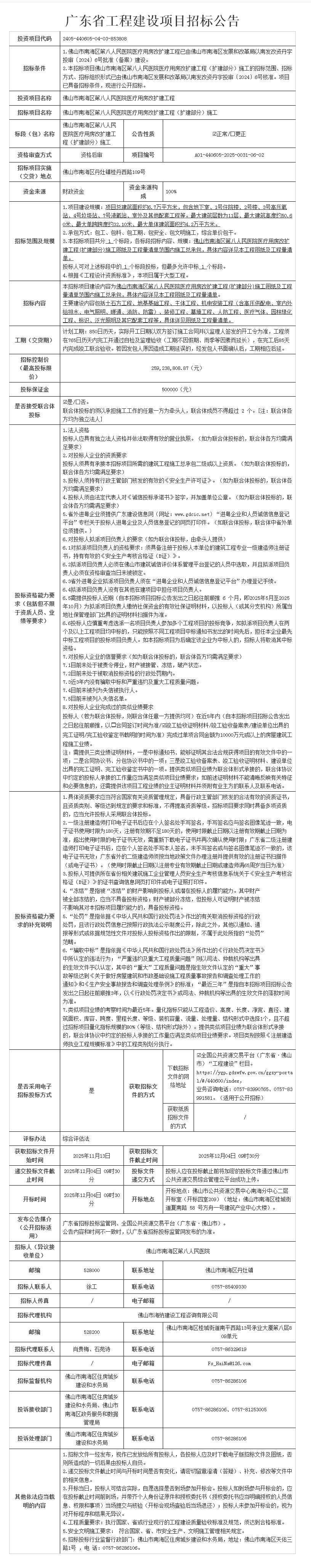 佛山市南海区第八人民医院医疗用房改扩建工程(5号污水处理站)施工招标公告