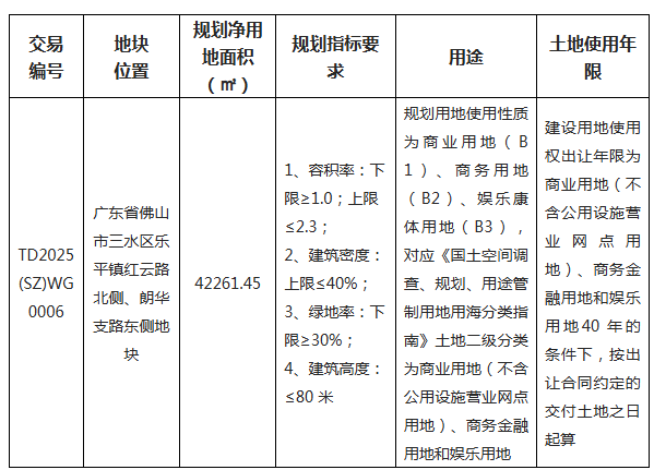 五、有意参与竞买者可于2025年11月12日后登录网上交易系统下载TD2025(SZ)WG0006地块的《佛山市国有建设用地使用权网上挂牌出让文件》。