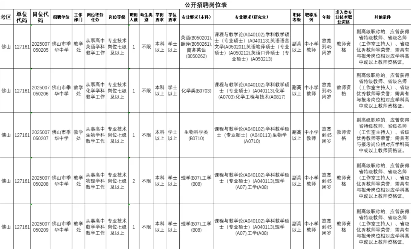 今天起报名!【公办正编】佛山市季华中学招聘6名高层次人才