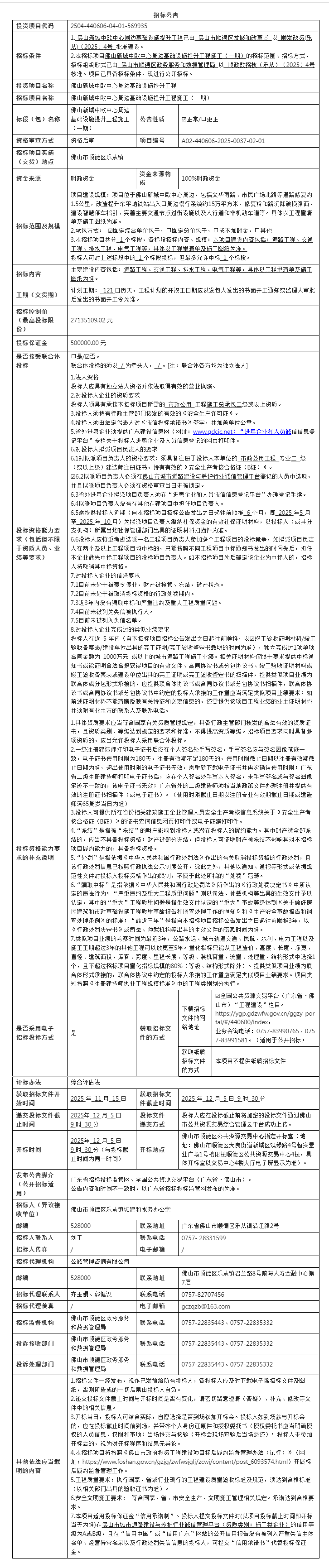 佛山新城中欧中心周边基础设施提升工程施工(一期)招标公告