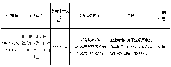 五、有意参与竞买者可于2025年11月14日后登录网上交易系统下载TD2025(SS)WP0067地块的《佛山市三水区国有建设用地使用权网上拍卖出让文件》。