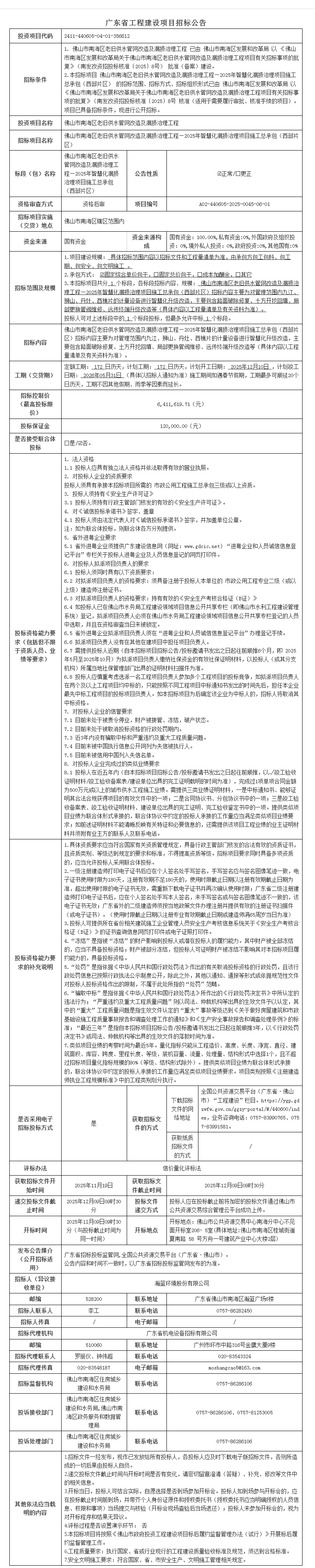 龙江镇官田片区道路、仙塘大道、朝阳大街道路、华西大道等道路改造工程已由佛山市顺德区发展和改革局以 顺发改资(龙江)〔2025〕8号 批准(备案)建设...[阅读全文]