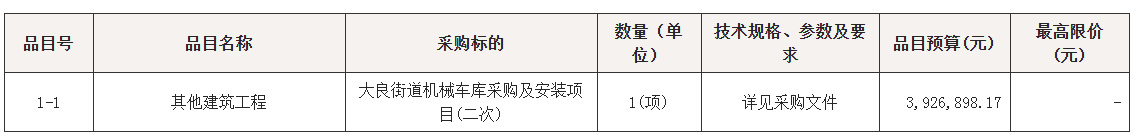 项目名称:大良街道机械车库采购及安装项目(二次)