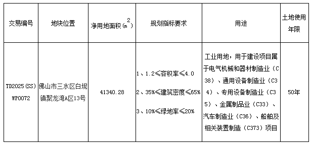 五、有意参与竞买者可于2025年11月21日后登录网上交易系统下载TD2025(SS)WP0072地块的《佛山市三水区国有建设用地使用权网上拍卖出让文件》。