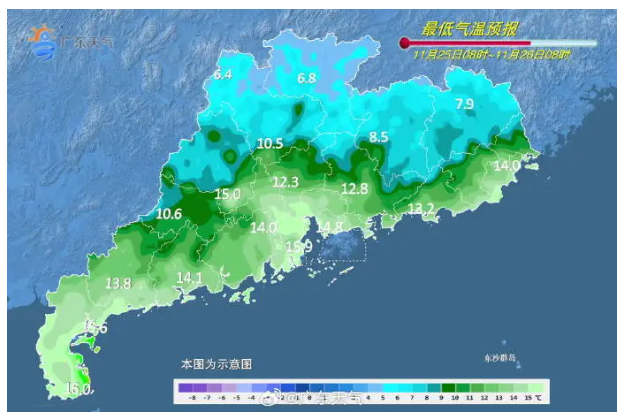先是24日夜间到25日白天,全省气温小幅下降,广东海面风力逐渐加大到6~7级阵风8级。