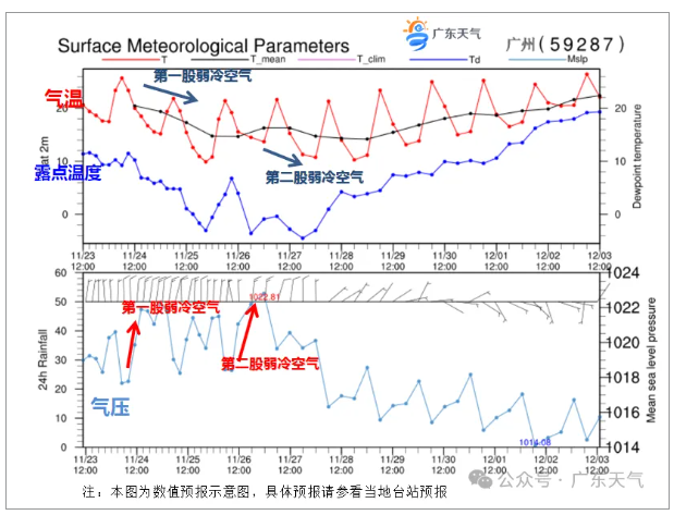 两股弱冷空气作用下,26日和27日早晨粤北山区部分市县将出现5℃左右的低温,早晚寒凉。