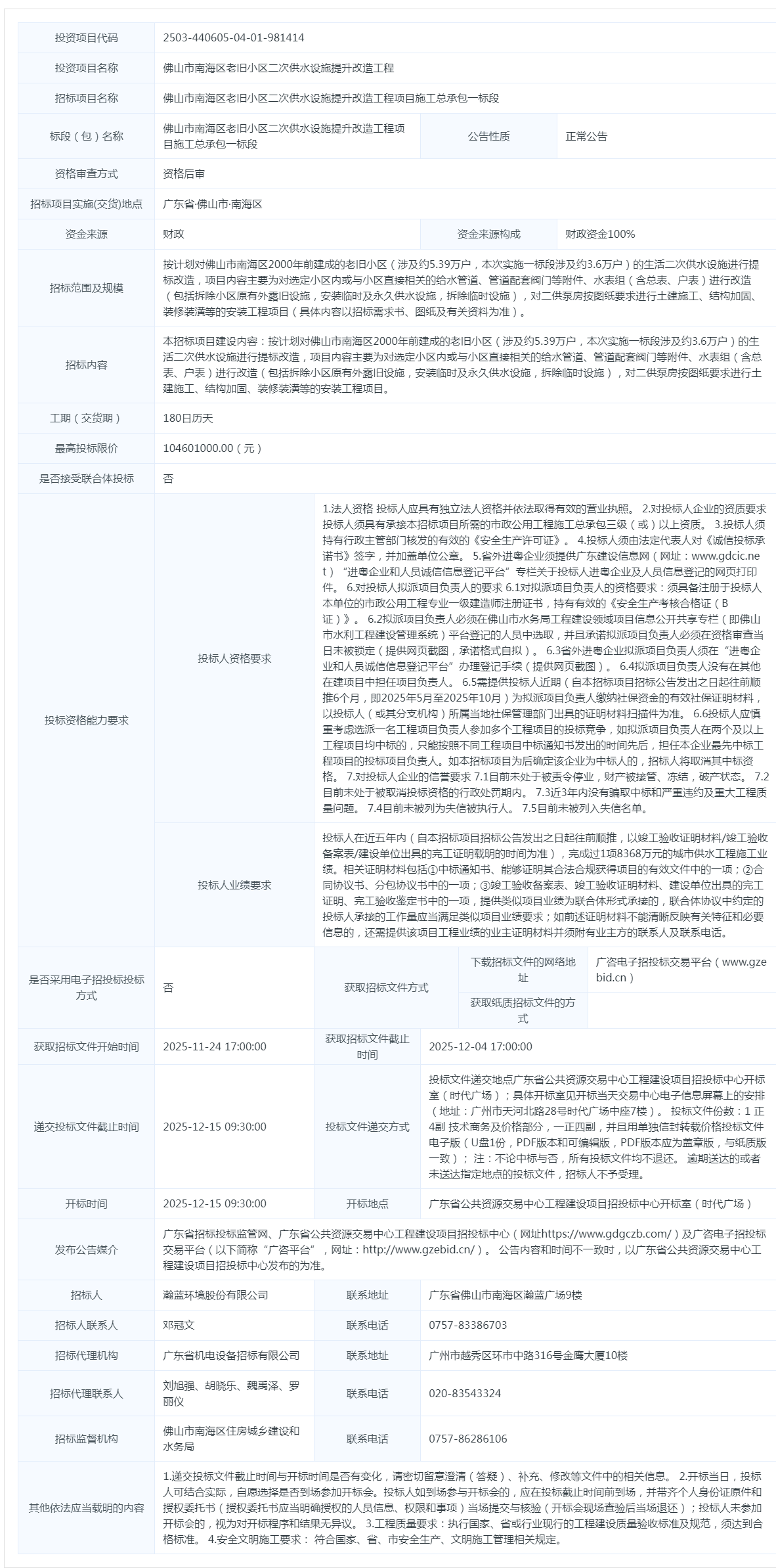 佛山220千伏德和(大良Ⅱ)输变电工程电缆地埋通道-施工代建采购项目的潜在供应商应在广东省政府采购网https://gdgpo.czt.gd.gov.cn/获取采购文件,并于 2025年12月03日 09时30分 (北京时间)前提交响应文件。