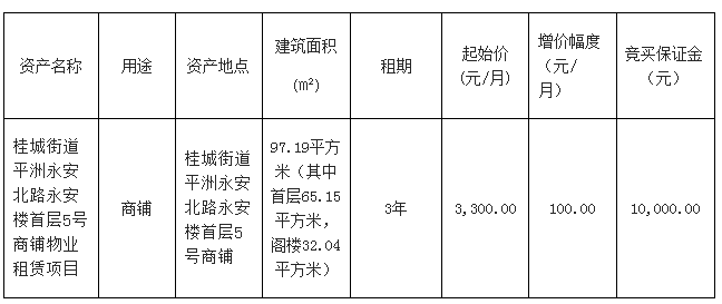 南海桂城街道平洲永安中路3号首层商铺之一物业租赁项目