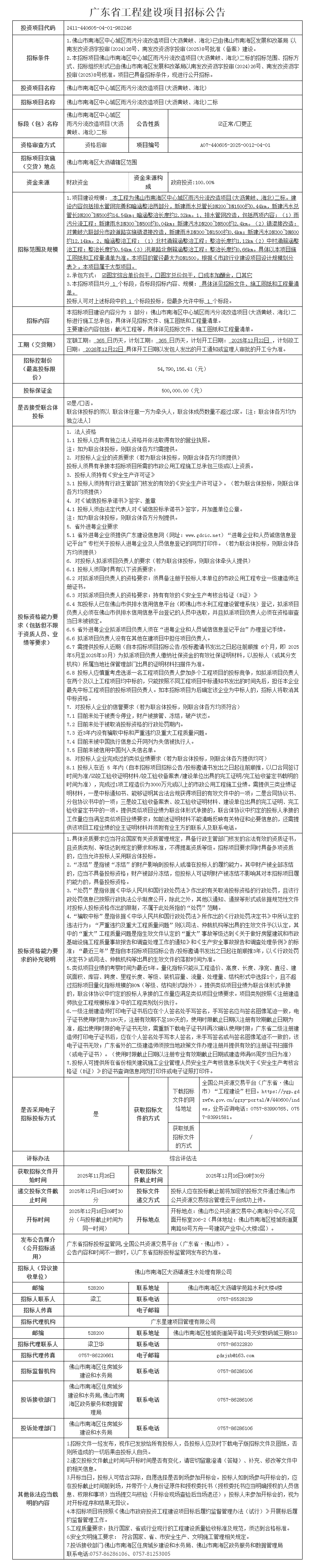 佛山市南海区中心城区雨污分流改造项目(大沥黄岐、海北)二标招标公告
