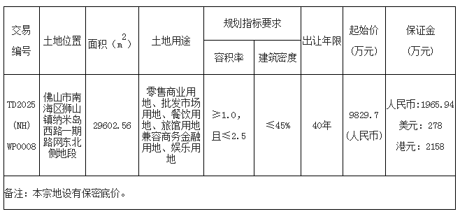 八、自本次公告起至网上拍卖截止期间,如有关于本宗地竞买文件的修改、澄清、说明等将通过网上交易系统以及佛山市南海区人民政府网发布,请有意参与竞买者密切留意。其它未尽事宜,详见本宗地的网上拍卖出让文件。