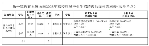 根据工作需要,乐平镇教育系统面向2026年高校应届毕业生招聘教师6名,本场招聘在湖南长沙设点。