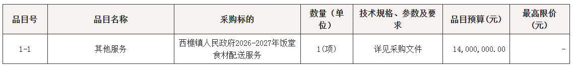 采购包1(西樵镇人民政府2026-2027年饭堂食材配送服务采购项目):