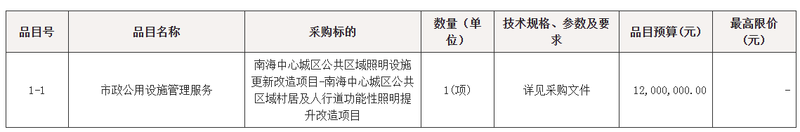 采购包1(南海中心城区公共区域照明设施更新改造项目-南海中心城区公共区域村居及人行道功能性照明提升改造项目):