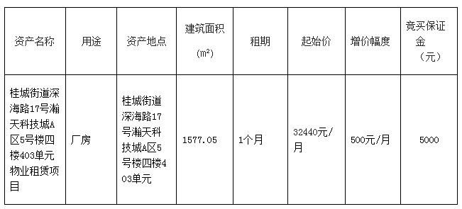 南海桂城街道深海路17号瀚天科技城A区5号楼四楼403单元物业租赁项目