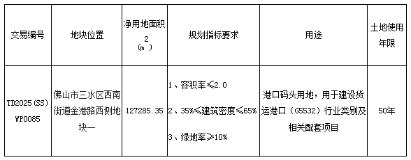 五、有意参与竞买者可于2025年12月4日后登录网上交易系统下载TD2025(SS)WP0085地块的《佛山市三水区国有建设用地使用权网上拍卖出让文件》。