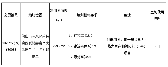 五、有意参与竞买者可于2025年12月4日后登录网上交易系统下载TD2025(SS)WP0083地块的《佛山市三水区国有建设用地使用权网上拍卖出让文件》。