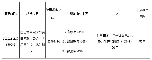 五、有意参与竞买者可于2025年12月4日后登录网上交易系统下载TD2025(SS)WP0082地块的《佛山市三水区国有建设用地使用权网上拍卖出让文件》。