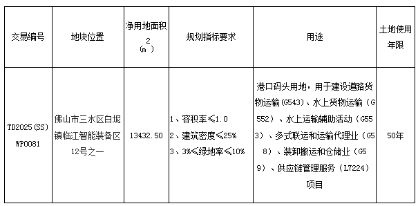 五、有意参与竞买者可于2025年12月4日后登录网上交易系统下载TD2025(SS)WP0081地块的《佛山市三水区国有建设用地使用权网上拍卖出让文件》。