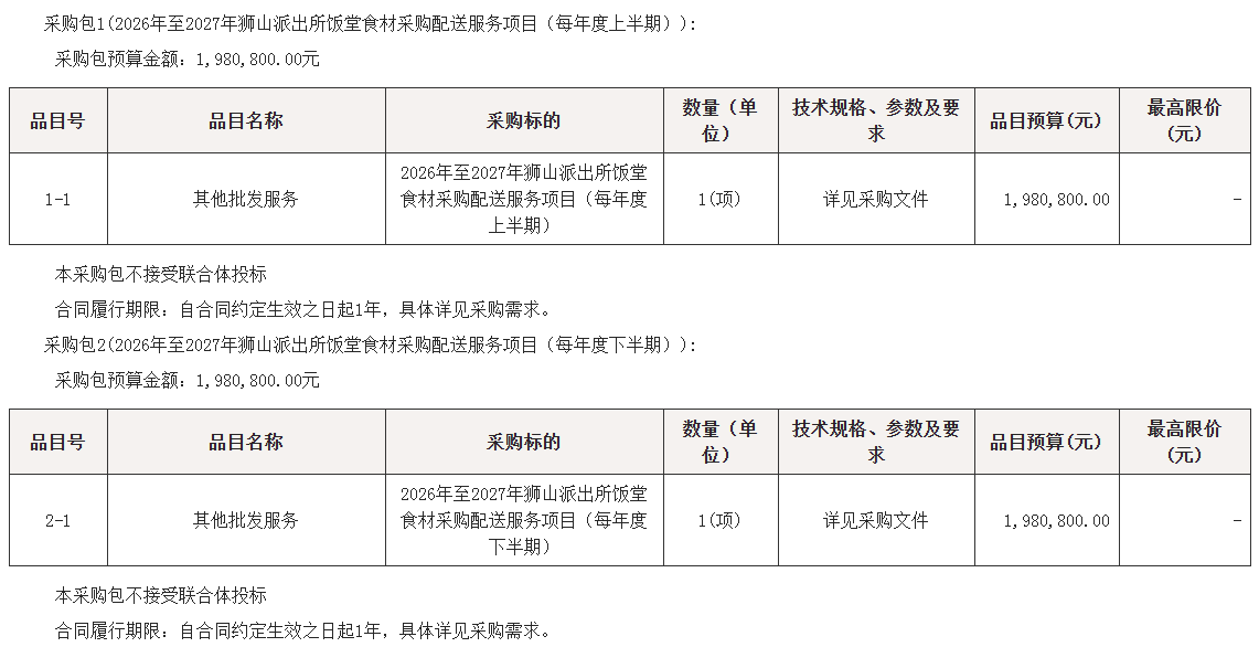 2026年至2027年南海狮山派出所饭堂食材采购配送服务项目竞争性磋商公告