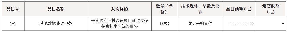 采购包1(平南顺利旧村改造项目征收过程信息技术及统筹服务):