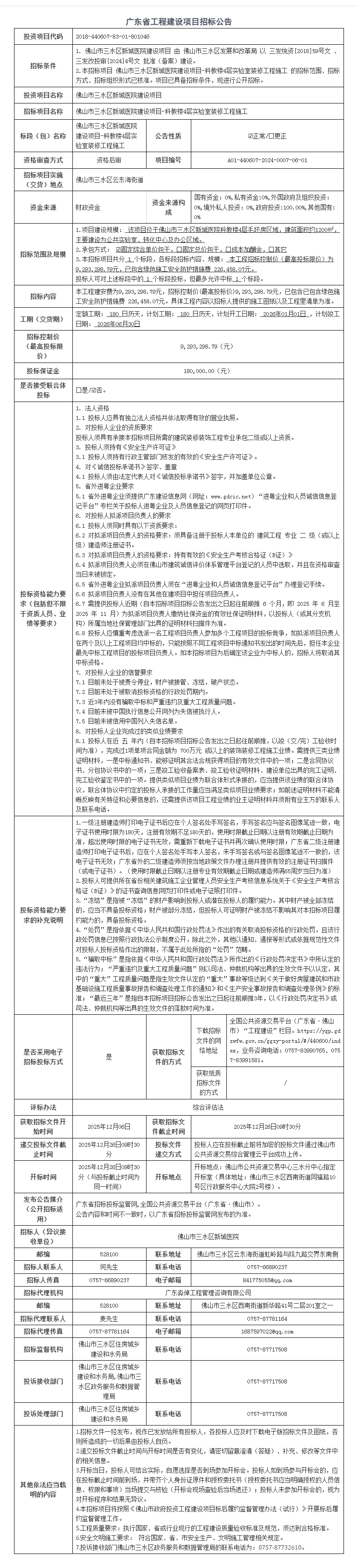 佛山市三水区新城医院建设项目-科教楼4层实验室装修工程施工招标公告