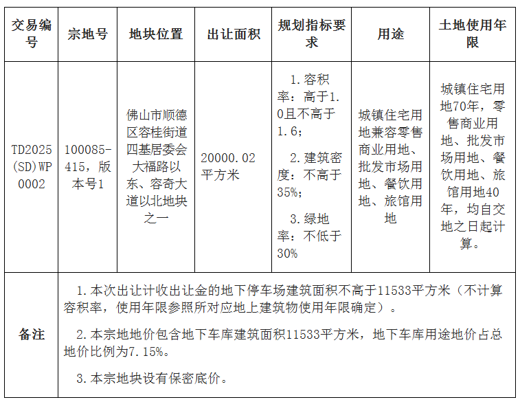 十一、自本次公告起至网上拍卖截止期间,如有关于本地块网上拍卖文件的修改、澄清、说明等将通过网上交易系统、佛山市顺德区公共资源交易中心网站发布,请有意参与竞买者密切留意。其它未尽事宜,详见该地块的交易文件。